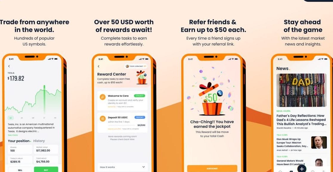 Cera’s platform makes the US stock market accessible as it allows investing as little as $2. The platform supports investments in fractional shares, offering increased flexibility to users.